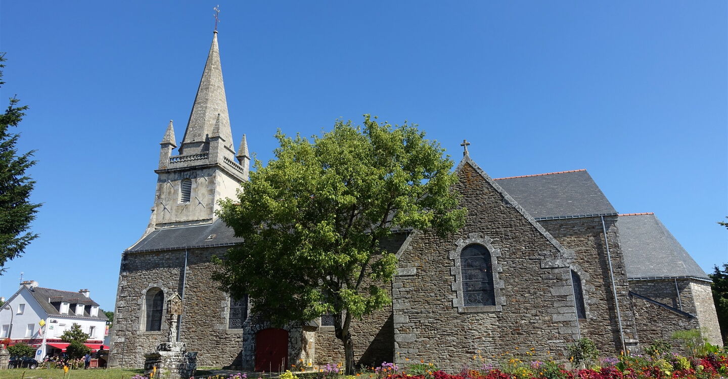 Vom Parkplatz gehen wir an der aus dem 15. Jahrhundert stammenden 01 Église St-Gervais-St-Protais Saint-Avé (45 m) vorbei und bis zum großen Kreisverkehr vor. Auf Höhe des Wasserbrunnens befindet sich auf der gegenüberliegenden Straßenseite das aus dem 15. Jahrhundert stammende Manoir du Kreisker. An der rechten Ecke des Gebäudes steht ein runder Turm, der einen Taubenschlag beherbergt. Außerdem findet man im Vorgarten einen Brunnen vor. Im 15. und 16. Jahrhundert hatten mehr als 40 Adelsfamilien in den Herrenhäusern und Schlössern im Umkreis von Saint-Avé gewohnt. Wir setzen unseren Weg auf der Rue du Général de Gaulle fort und kommen an dem Zwillingskreuz Bourg d'en Bas Croix géminées vorbei. Dies ist eine Besonderheit, denn in der Bretagne gibt es nur wenige Zwillingskreuze, dieses stammt aus dem 16. Jahrhundert und besteht aus Granit.