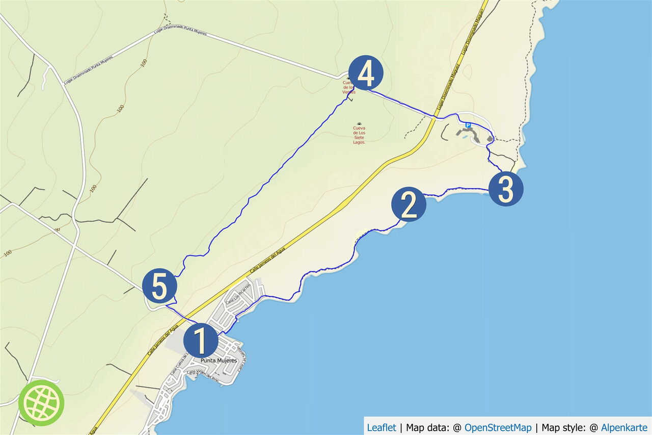 Das Teilstück zwischen den Cueva de los Verdes und Punta Mujeres erfordert einen guten Orientierungssinn, da es immer wieder weglose und nicht eindeutige Abschnitte gibt. Untergrund: 80 % Schotterpfade und 20 % Asphaltstraße. Einkehr: Am Wanderweg gibt es keine Einkehrmöglichkeiten, aber am Ziel in Punta Mujeres das Grillrestaurant Palenke. Die Wanderung kann zu jeder Jahreszeit unternommen werden. Da die Wanderung direkt an ihnen vorbei führt, empfiehlt sich die Besichtigung der Sehenswürdigkeiten Cueva de Los Verdes und Jameos del Agua.