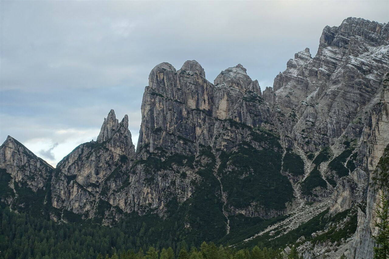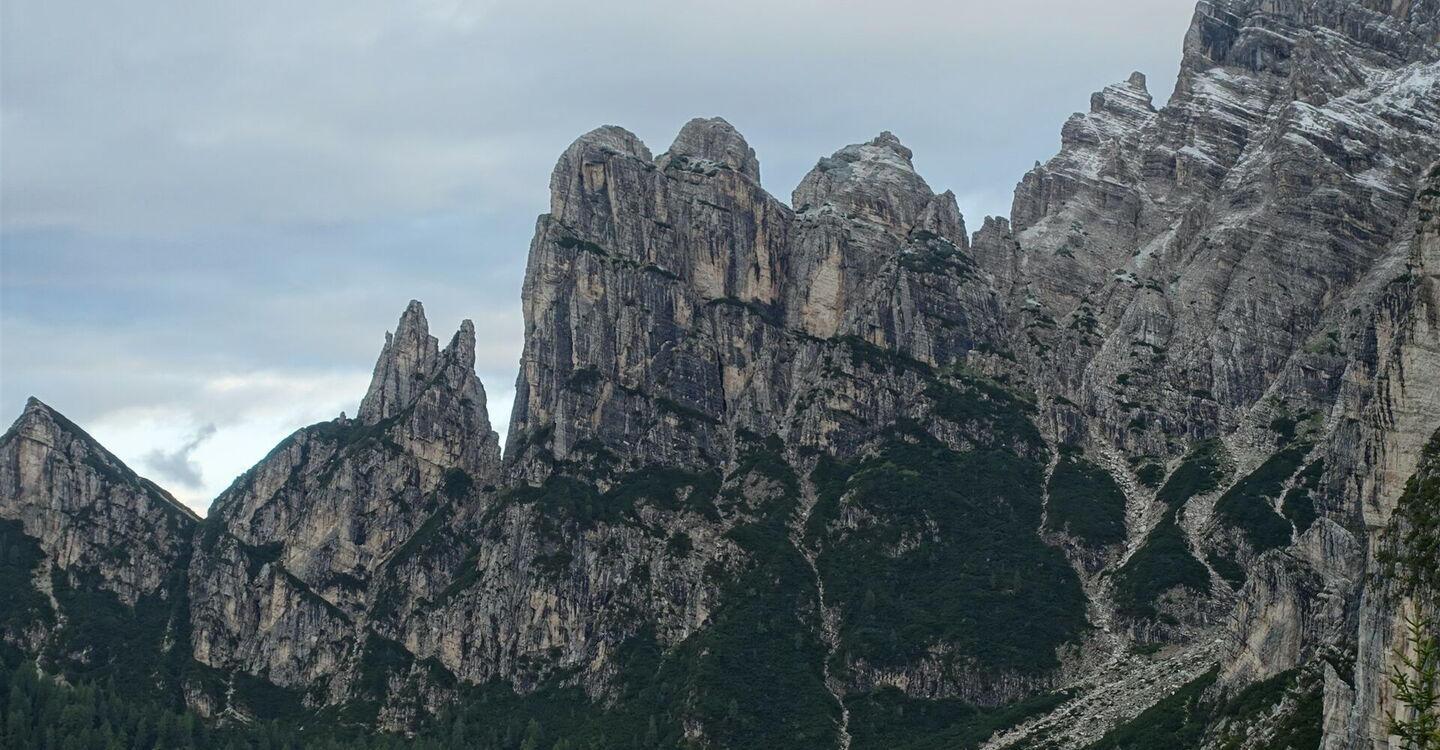 Das Civetta-Bergmassiv bildet gemeinsam mit den kleineren Gipfeln der Moiazza-Untergruppe die Civetta-Moiazza-Gruppe. Der höchste Punkt der Moiazza ist die 2.878 m hohe Cima Moiazza. Diese touristisch noch wenig erschlossene Region überzeugt durch landschaftliche Schönheit und ihre mit Blumen übersäten Almwiesen. Auf dieser außergewöhnlichen Etappe wandern wir entlang imposanter Felsnadeln wie dem 2.485 m hohen Torre Trieste oder dem 2.083 m hohen Torri del Camp und unterhalb der bis zu 700 m hohen Wandzonen der 2.413 m hohen Pala delle Masenade.