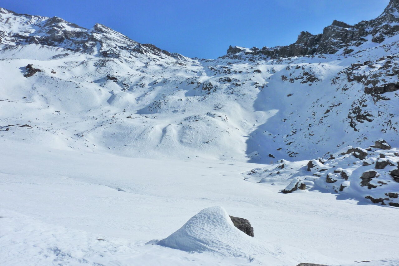 Einfacher Aufstieg immer auf dem Grat entlang bis zum Pass. Nach der Abfahrt einfache Orientierung auf Forstwegen. Die Abfahrt führt über einen Südwesthang. Folgende Ausrüstung wird empfohlen: Produkte für alpine Sicherheit im Schnee, Tourenski und Skitourenhelm. Es empfiehlt sich die Einkehr in Saint Jacques am Ende der Tour. Diese klassische alte Bar an der Straße ist ein Muss. Beste Jahreszeit: Januar bis April. Uns erwarten kurze Stücke mit bis zu 40° Hangneigung.