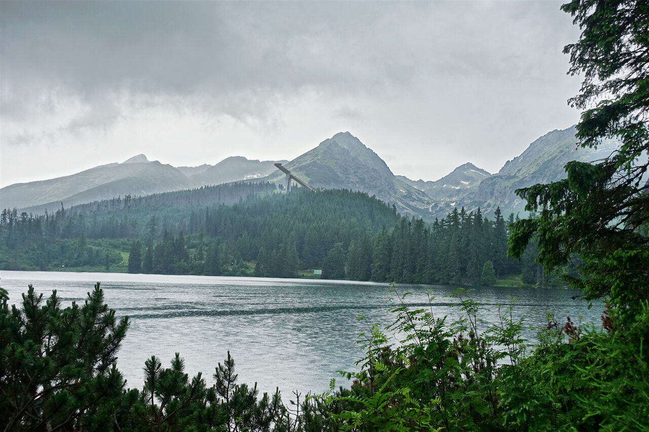 Während wir an der Südseite des Sees spazieren, haben wir einen besonders schönen 04 Ausblick (1346 m) auf die nördlich gelegenen Berge der Hohen Tatra.