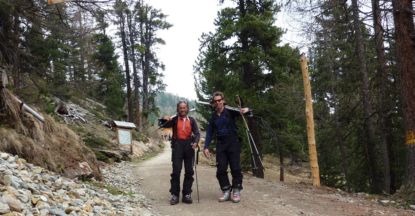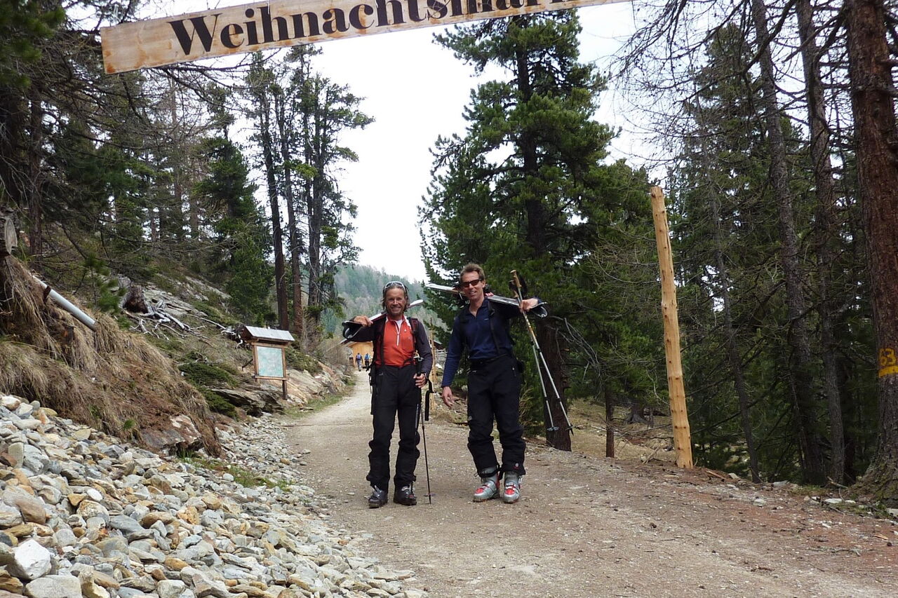 Je nach Schneeverhältnissen folgen 6 km Abfahrt. Wir mussten die letzte Strecke bis zur Enzianhütte zu Fuß gehen. Zurück geht es mit einem Abholer oder dem Taxi Voggler, Tel. mobil (0039) 335 6 00 68 65.
