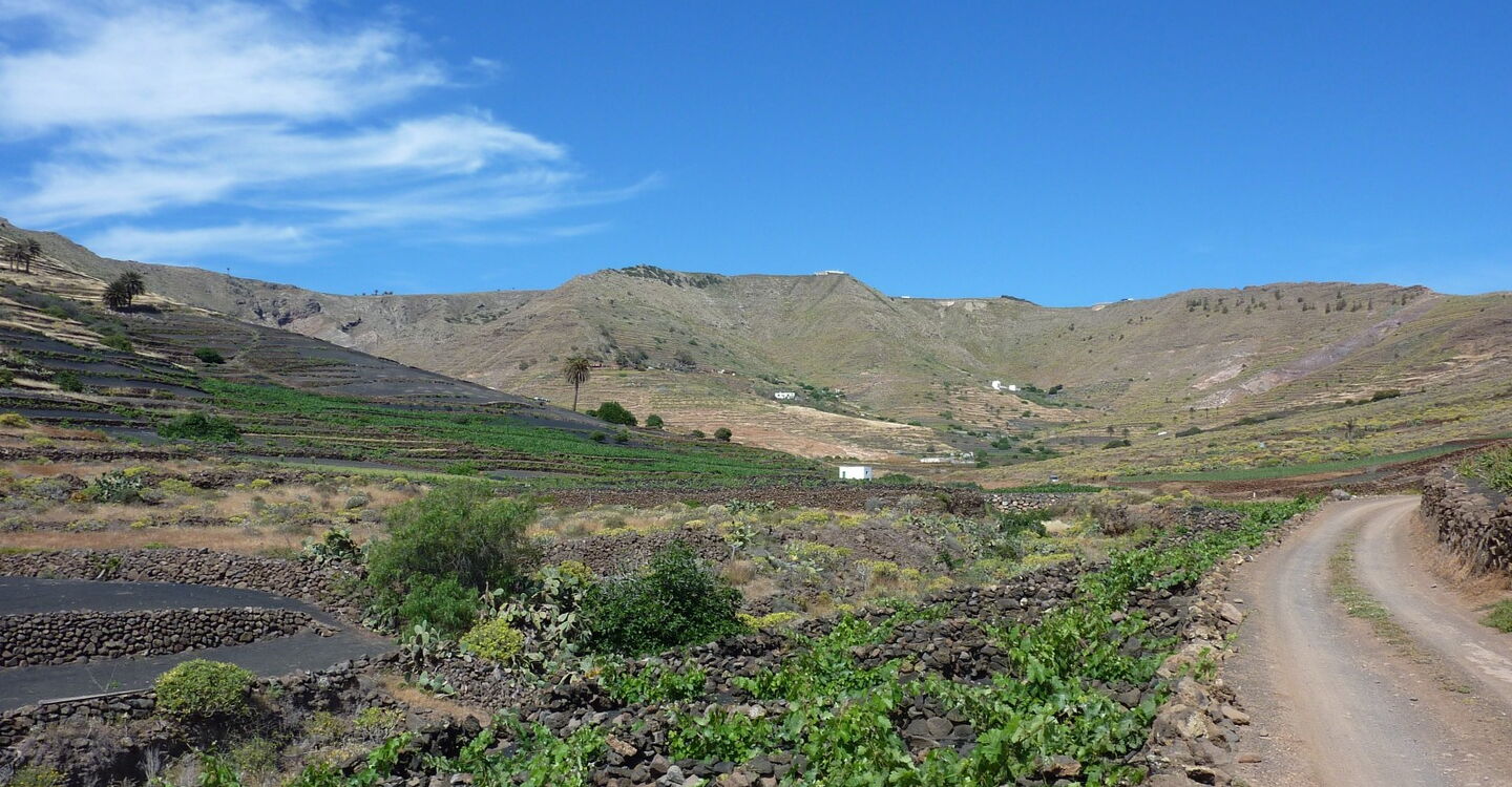 Unsere Tour startet im kleinen Dörfchen Tabayesco nördlich von Arrieta im Norden von Lanzarote. Da sich lediglich eine kleine und unbekannte Teerstraße durch das Tal schlängelt, ist man automatisch weit ab vom Tourismus. Auf dieser landschaftlich sehr beeindruckenden Wanderung durch bewirtschaftete Felder kann man Feigenbäume, Mandelbäume, Mais und Weizen sowie vielen Agaven und Kakteen bestaunen. Auf dem oberen Teil der Tour unterhalb des höchsten Berges der Insel, des Penas del Chache mit 672 m, ergeben sich immer wieder wunderschöne Fernblicke in das Valle de Temisa und auf die komplette Ostküste von Lanzarote.
