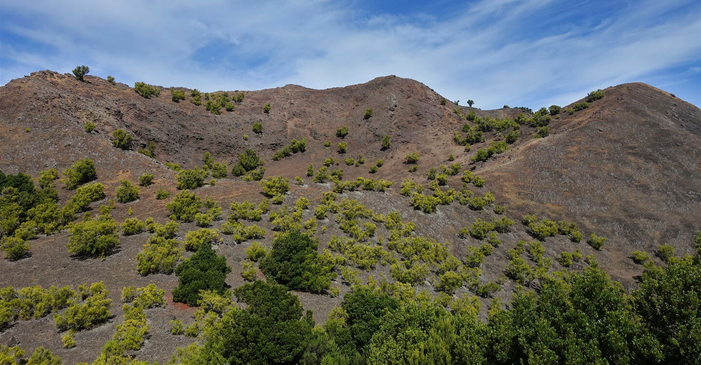 Aufgrund eines gravitationsbedingten Abrutschens entstand das El-Golfo-Tal in seiner heutigen Erscheinungsform. Daraus resultierte aber auch ein weiterer geologischer Prozess: Das auf der Insel ruhende Gewicht des abgerutschten Erdreiches war nun reduziert und konnte dem zunehmenden Druck von aufstrebenden Vulkanen nicht mehr widerstehen. Eine sogenannte phreatomagmatische Eruption durchschlug die überlagernden Gesteinsmassen, es entstand der Vulkan Tanganasoga. Feine vulkanische Asche lagerte sich im El-Golfo-Tal ab. Auf dieser Wanderung umrunden wir diesen besonderen Vulkan. Am Gipfel wandern wir völlig unspektakulär am ursprünglichen Krater entlang. Ein Wandererlebnis der Extraklasse.