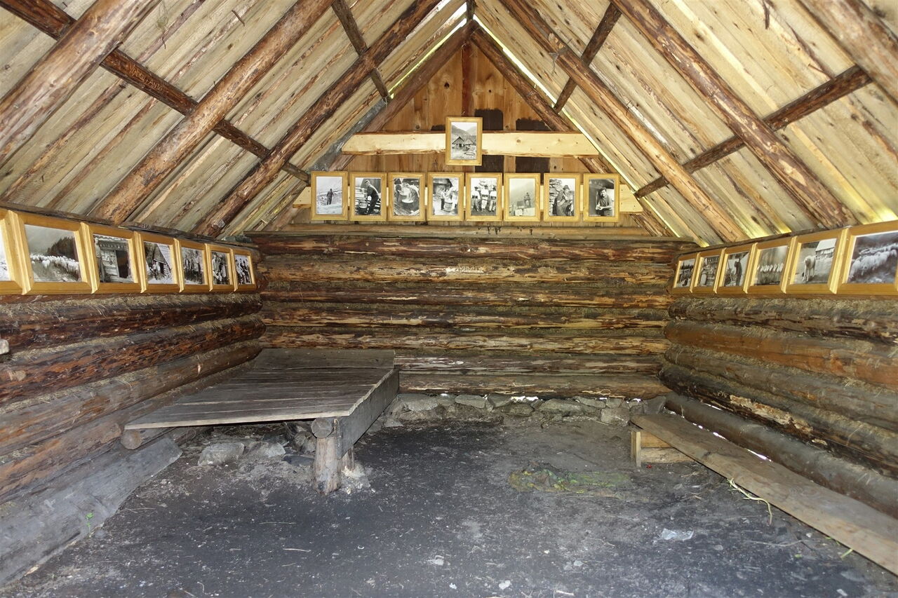 Wir queren erneut einen Bachlauf, bevor wir das Etappenziel erreichen, den 05 Koliba pod Klinom (1376 m). Es erwartet uns ein ursprüngliches Hochtal, eingebettet zwischen sechs mächtigen Zweitausendern. Besonders beeindruckend ist die felsige Spitze des 2163 m hohen Nižná Bystrá, der östlich der Hütte liegt. Bei der Recherchereise besuchte auch ein Förster die Hütte. Meine brennende Frage war: Gibt es hier Bären? Er antwortete, er hätte hier noch nie einen gesehen. Vielleicht schläft man mit diesem Wissen etwas beruhigter in der Hütte. Gute Nacht!