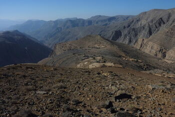 Kurze und einfache Wanderung zu einem verlassenen Dorf unterhalb des höchsten Bergs in Musandam, dem Jebel Harim.